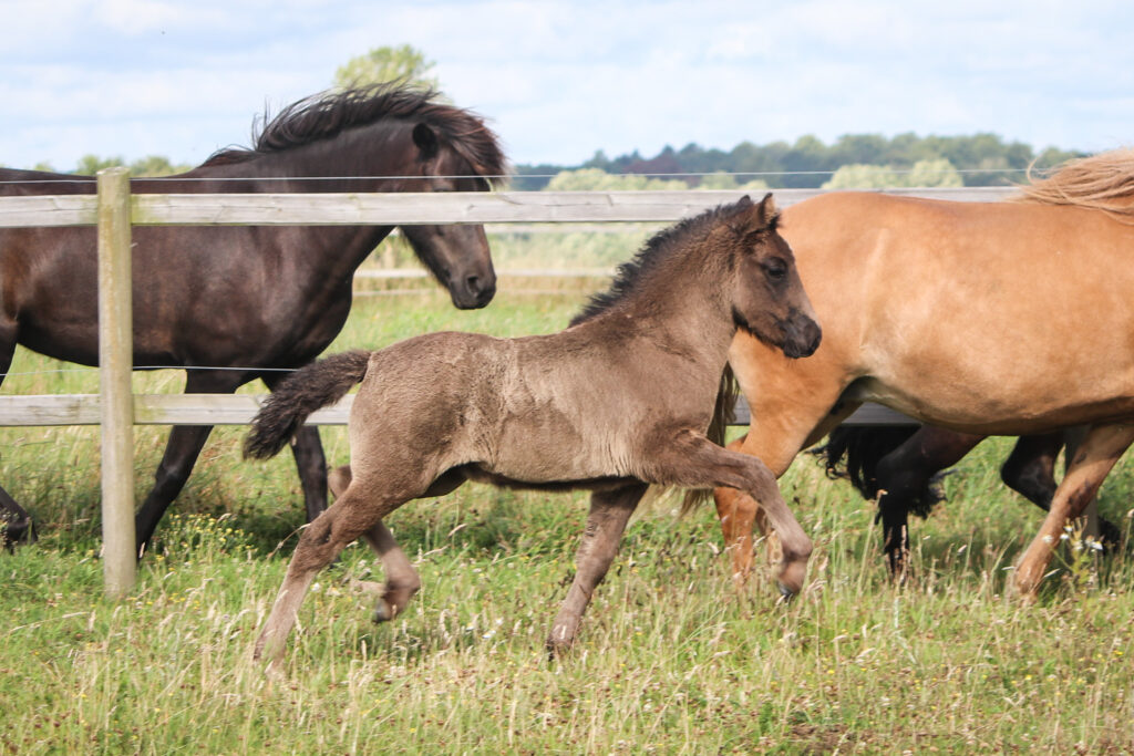 16. juni kom det smukkeste hoppeføl til verden, smuk sort med stjerne og snip. Vi er meget spændte på at lære hende at kende.